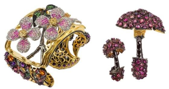 “Much artistic license was exercised to create my Jeweled Garden collection for Atelier Swarovski. I played with many different organic forms and shapes to design pieces which I wanted to appear as if they were picked from a magical garden to adorn the wearer. Each Swarovski gem is cut with perfect proportions, increasing the refraction of light and amplifying colors that reflect specific flowers and insects,” says Matthew Campbell Laurenza.