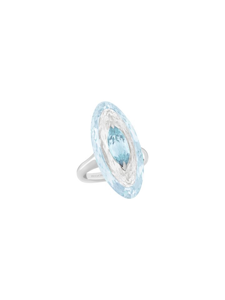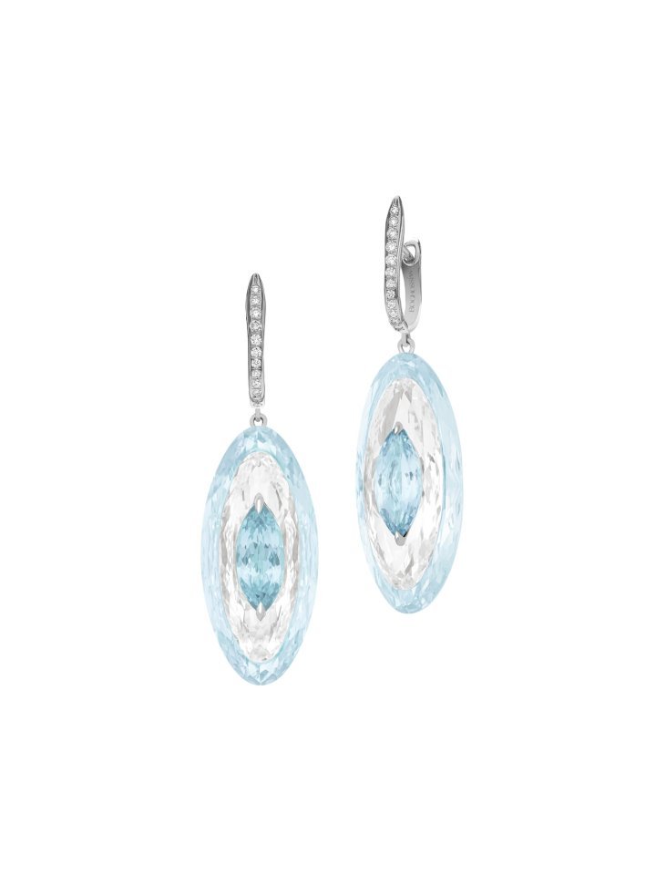 At the same time, Inlay Reveal is enriched by a new stone combination, pairing aquamarine with blue chalcedony to create subtle contrasts of transparency, softness, and depth. Together, the two stones form a harmonious palette of blues, where crystalline brilliance meets silky translucence in an elegant and contemporary design.