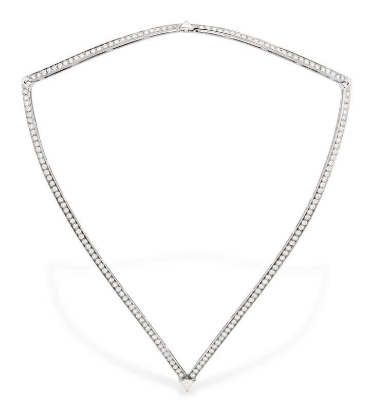 Trinity combines a deeply rooted sensibility and amazing craftsmanship skills, geometric elegance, precious components and spirituality. White and brown diamonds, rock crystals and citrine quartz as well as imperial topaz: all elements that make these precious volumes stand out even more. All stones selected by the designer have natural shades and properties that channel and maximise the energy that each one has to offer. In the eight 18kt pieces the triangle is the predominant shape, the first surface possible thanks to three elements. For their creation, the designer set the stones using trillion and special cuts, devised to enhance the structure and the brightness of the stones.