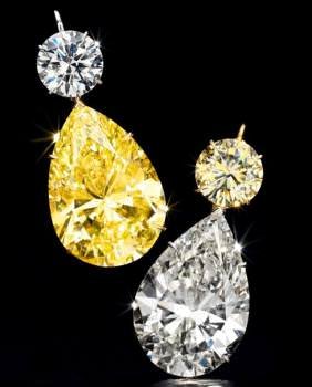 Among the colored diamond highlights is an oval-cut fancy intense yellow, internally flawless diamond of 68.35 carats (estimate $2.2-3.2 million) with excellent polish and symmetry. For collectors who don’t want to have to choose between colored or colorless diamonds, a stunning pair of diamond ear pendants brings together a pear-shaped fancy yellow diamond of 52.78 carats and a pear-shaped white diamond of 50.31 carats surmounted by circular-cut fancy yellow and white diamonds (estimate: $4.5-6.5 million). Ingeniously mounted in yellow and white gold, the pendants may be easily swapped or detached completely, giving the owner three options for how to wear them.