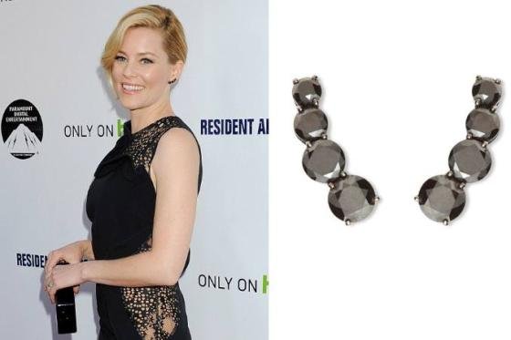 Elizabeth Banks wore apair of Jack Vartanian black diamond ear climbers at the Los Angeles premiere of Hulu’s ’Resident Advisors’ at Sherry Lansing Theatre at Paramount Studios in Los Angeles, California.