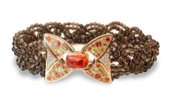 Samarkand bracelet consists of a pattern-set clasp and a richly braided beads of semi-precious. Original and colourful, this bracelet elegantly fits the wrist. The ingenious plays on the contrasts of colours and materials sourced from all around the world,like the snakewood. It also makes it easy to change the braid of gemstones,to offer a unique combination of colours.