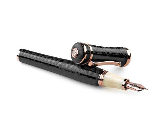 Its resin cap and body presented in three colour combinations: all-Red or Black & Red for the Sterling Silver model, Black & Ivory White for the 18k Rose Gold model. The actress’ signature graces the tip of each pen. The silver version is offered as Fountain, Rollerball and Ballpoint pens. The solid 18k gold pen edition comprises Fountain and Rollerball. For the fountain pens, the 18K gold nibs are enriched with an artist’s rendering of Sophia’s face.