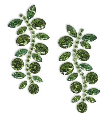 Symbolising the poetry of paradise, especially in its shapes and lines, Paul Wild created floral magic in a fabulously fluid and graceful Rubellite Tourmaline ear set composed of carvings and domed cabochons totalling 55.67 carats. Arranged with gems collected over time, not of new production, the colour perfectly matches Pantone’s Pink Yarrow hue.