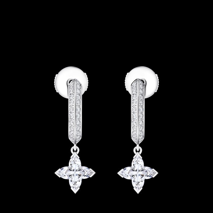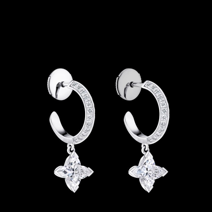 LV Diamonds hoops in white gold, 1.00 carat LV Monogram Star cut diamonds and diamonds. Louis Vuitton Jewelry.
