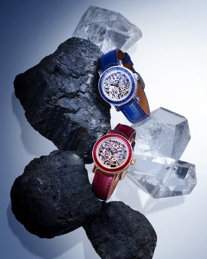 n its quest for modern yet timeless creations, Franck Muller offers an iconic piece as its High Jewellery launch for 2024: the Round Skeleton Baguette in 31mm, an exceptional collection set with baguette diamonds or precious gems, reflecting the perfect marriage between the world of fine jewellery and haute horlogerie.