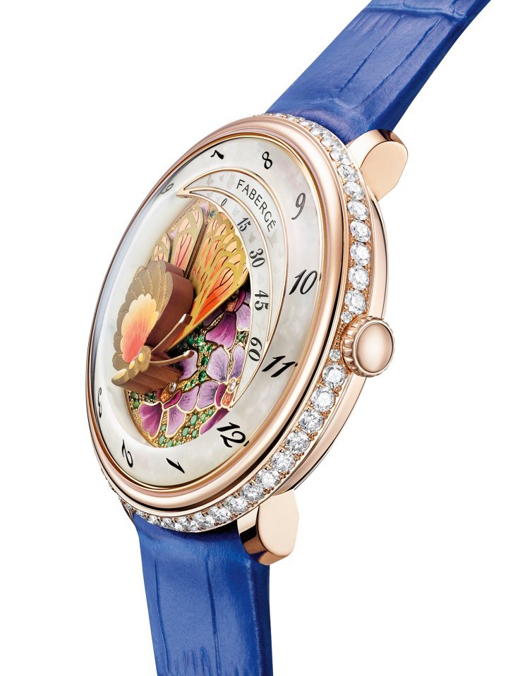 Each piece in this limited-edition series in celebration of Sincere Fine Watches’ 70th anniversary possesses a bespoke dial, making every watch entirely unique. These creations encapsulate the beauty of flora and fauna found in the gardens of Singapore and Malaysia. Wearable art for the wrist, each orchid flower has been micro-painted and engraved onto a mother-of-pearl dial. Set in an 18k rose gold case, the dials pop with colour through the hand-set tsavorites and diamonds. Unique movement developed exclusively for Fabergé by Agenhor.