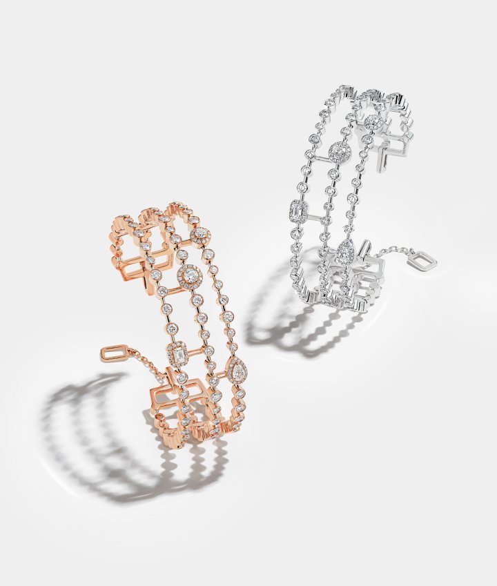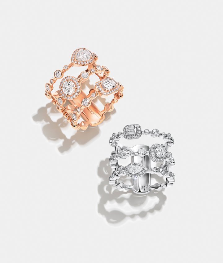 At the heart of this family trilogy, the diamond holds a place of honour. Its purity sparks the imagination, and Sartoro’s emblematic collection is entirely focused on this supreme gemstone. The three most iconic diamond cuts are showcased in all their majesty: the traditional brilliant cut, the emerald cut and the pear cut. Each one has such singular beauty and powerful symbolism that it plays a unique role while perfectly complementing the others.