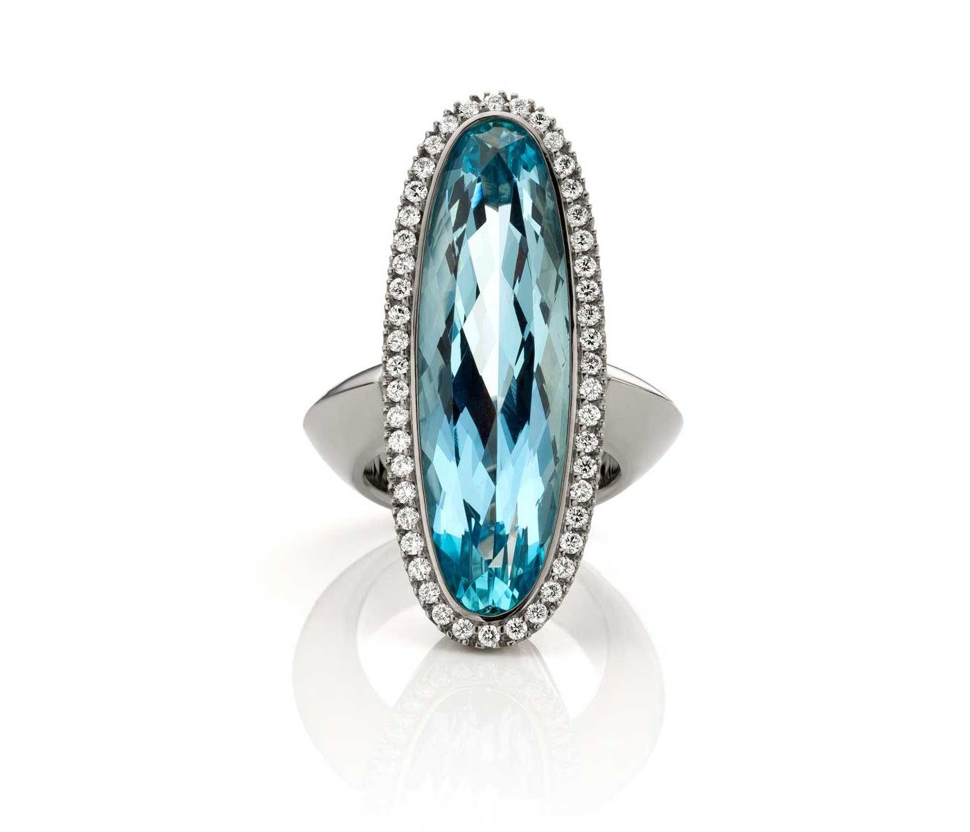Aquamarin ring with Diamonds in 18k Oro Grigio (White gold) by