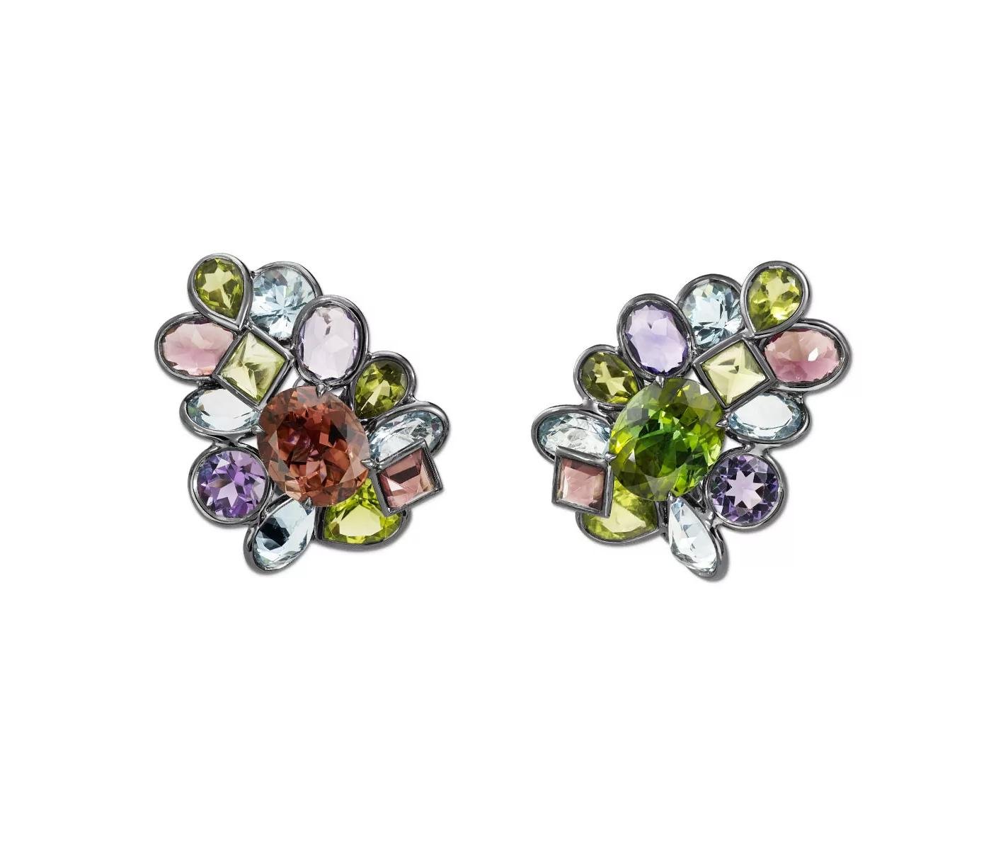 Earrings with Amethyst, aquamarine, green tourmaline, peridot, pink tourmaline by