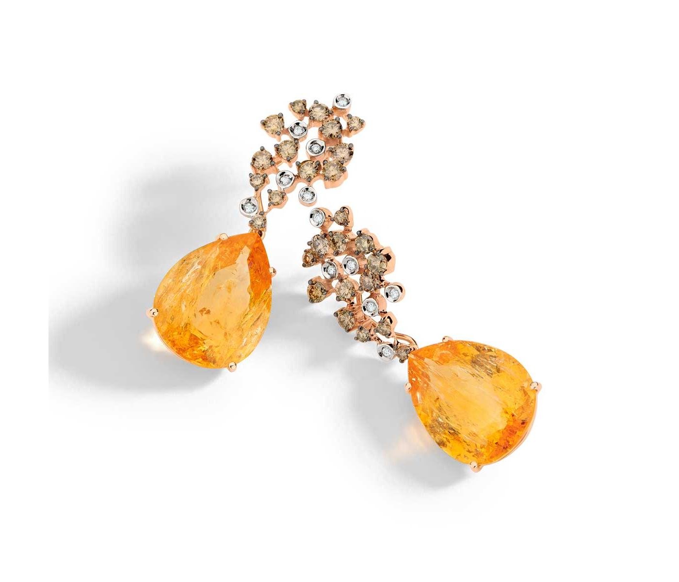 Uniting classic colors and forms, these renewing designs pay attention to the smallest of details by honoring the harmony of movement and the contrast of color. They feature diamonds, peridots, pink tourmalines, rubilites and blue sapphires in the “high jewelry" line, and the different shades of orange and yellow found in rare imperial topaz in the “jewelry” line.