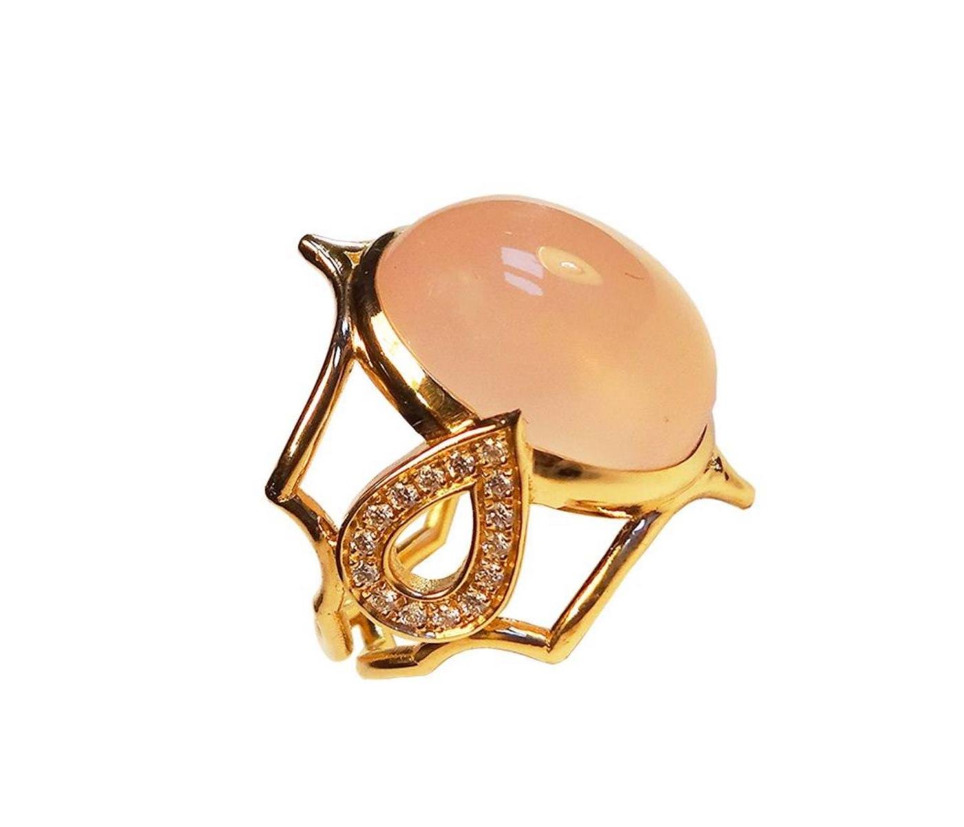 Ring in pink quartz, diamonds and rose gold by