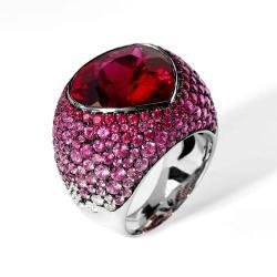 Brilliant-cut diamonds, red enamel, 18K gold, and platinum by